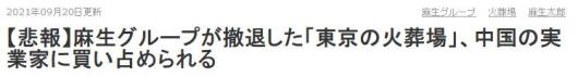 原标题:《日媒:东京9个火葬场6个被中国资本控股……》